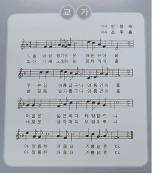 동쪽에서 해가 떠오르는 모습으로 어린 새싹들이 밝고 힘차고 당당한 모습으로 살아갈 것을 기원하고 있음